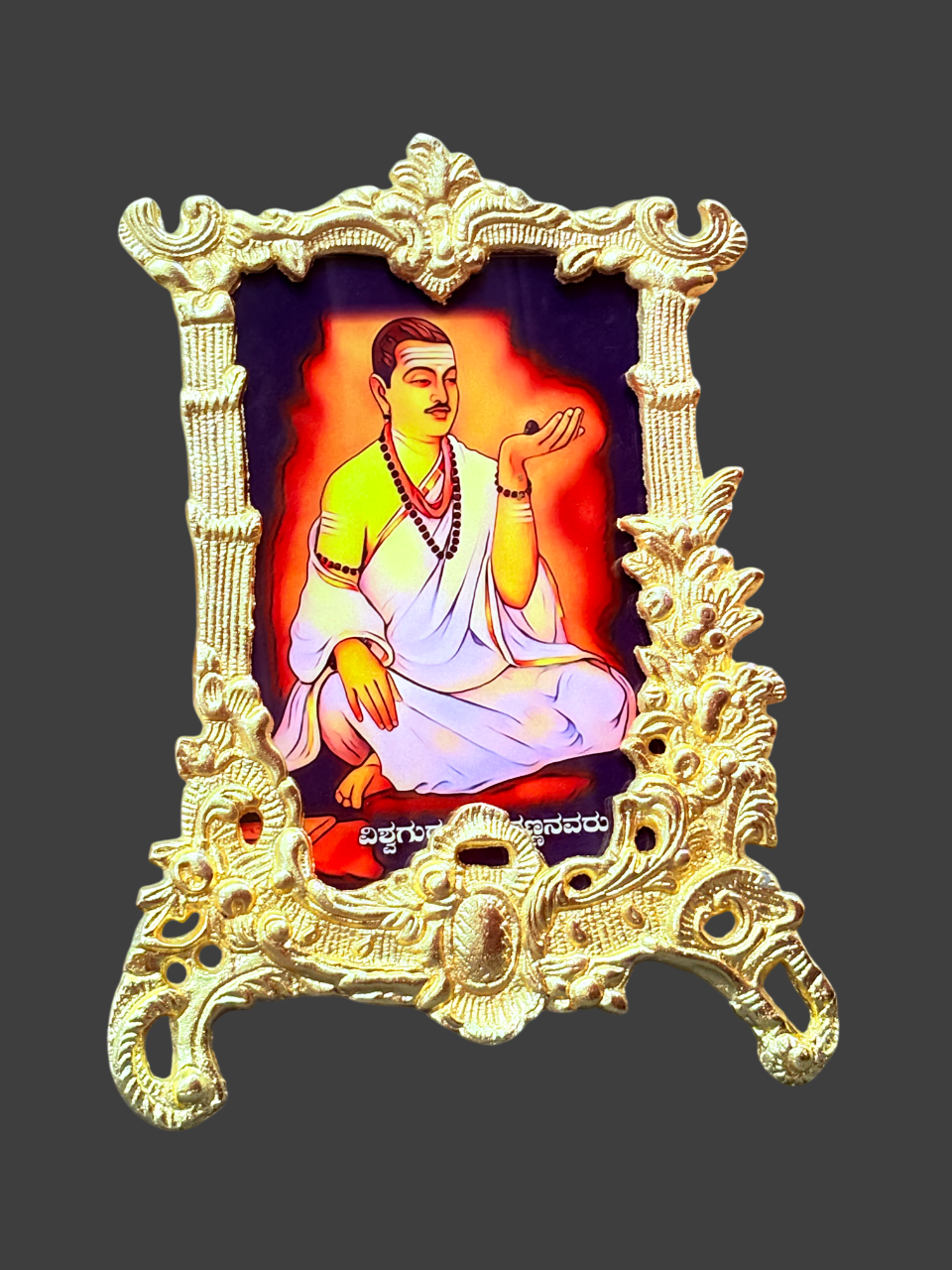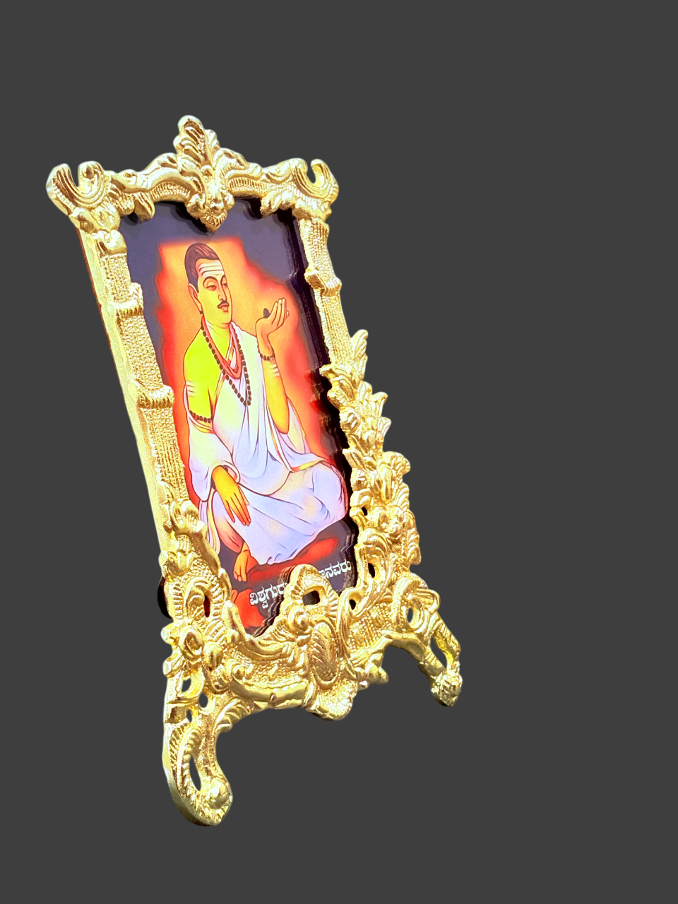 Photoframe of Lord Basaveshwara Basavanna (ಬಸವೇಶ್ವರ) , was a saint poet, social reformer and philosopher who fought against societal problems of the day, rose up against inequalities based on caste, class, and gender. He emphasized the dignity of labour, monotheism,and nonviolence while advocating and practicing the values of equality. His acknowledgement of women’s uniqueness and rights was one of his many contributions to the regeneration of contemporary tradition-bound society.His thought and teachings go beyond all boundaries, addressing the global and eternal. . As a result, women’s contributions to religious experience were not only warmly embraced,but also greatly valued and promote.